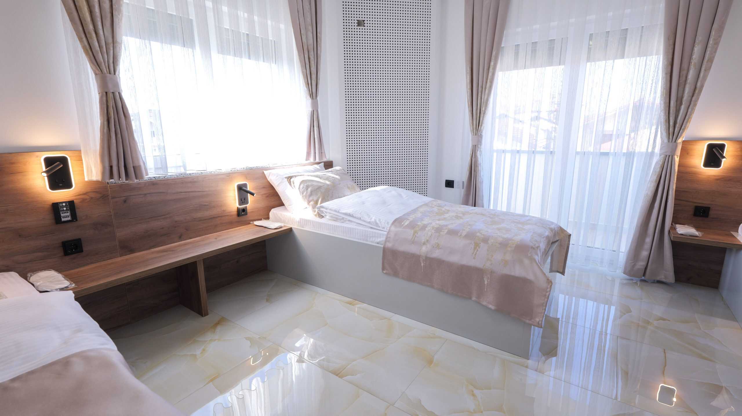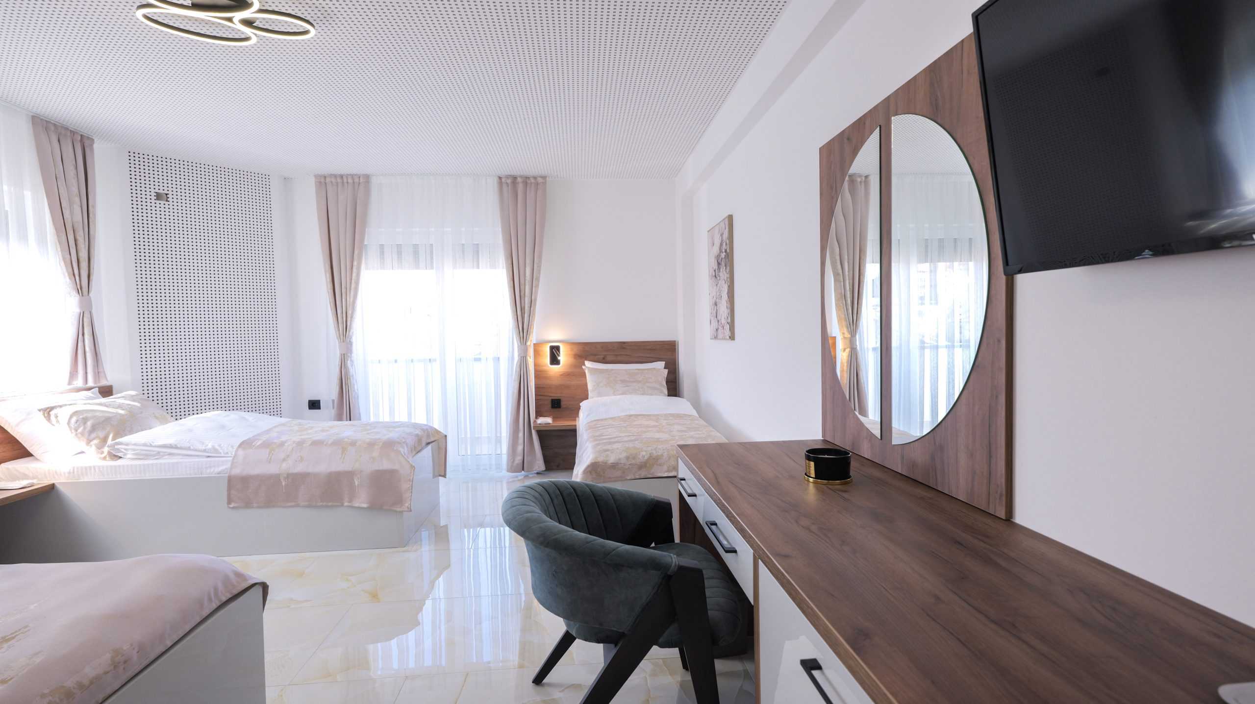 Sobe i apartmani opremljeni su modernim namještajem i tehnologijom kako bi vaš boravak bio što ugodniji i opuštajući. Bilo da tražite kratki predah ili duži boravak, naše sobe i apartmani pružaju sve što vam je potrebno za nezaboravno iskustvo.